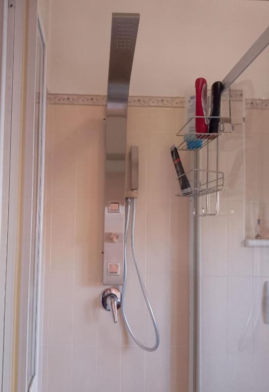 Il bagno personale è composto da wc, doccia idromassaggio in cristallo, mobile- lavandino con specchio retroilluminato, fatto a mano da artigiani del luogo, plafoniera francese artigianale con prismi di cristallo.